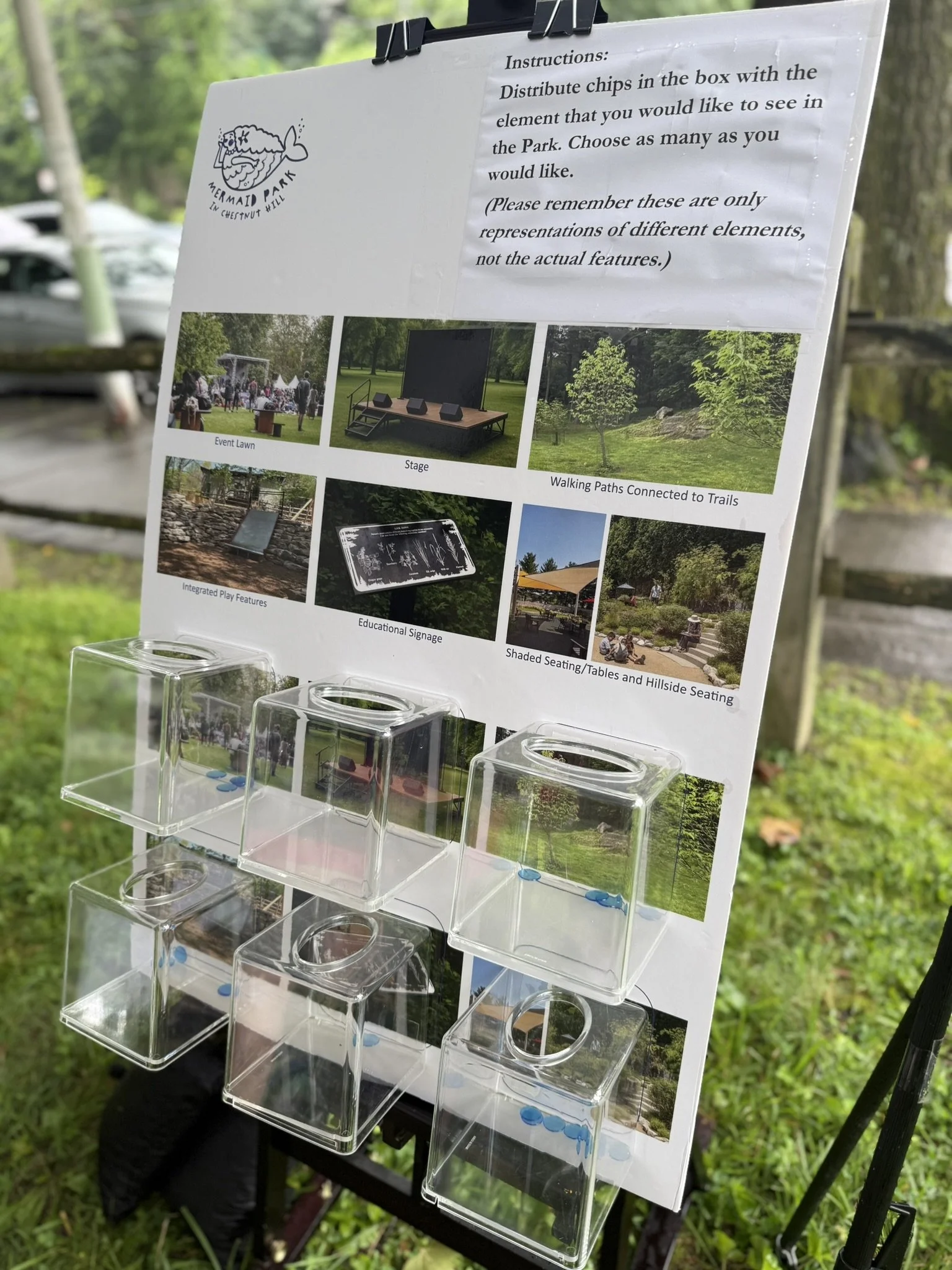 This project aims to shape Mermaid Park into a space that reflects the character and needs of the local community. On Saturday, July 19th, we joined the Chestnut Hill Community Association at the park site to share our early design concepts and gather feedback from residents and visitors to the local Farmer’s Market. Our vision is to enhance the park’s role as a place for community connection and passive recreation, ideally making it a space where people can meet, relax, and explore nature.
